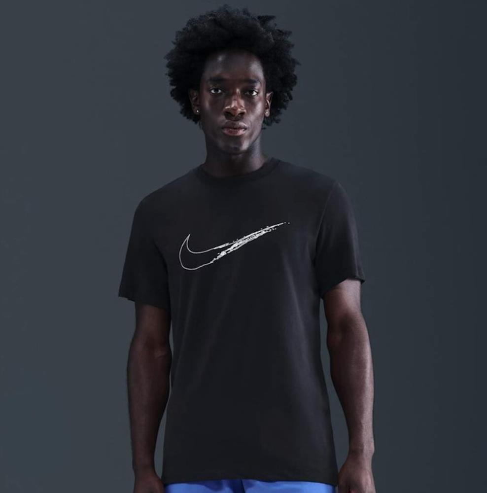 Esta camiseta de alto desempenho é feita com tecido jersey macio, leve e respirável. Tecnologia Nike Dri-FIT absorve o suor da sua pele para evaporação mais rápida, ajudando a mantê-lo seco e confortável.