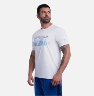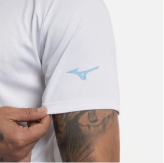 T-shirt em malha leve de poliéster, com mangas curtas e modelagem regular. O diferencial da peça está na estampa exclusiva Mizuno para um look diferenciado para o seu treino.