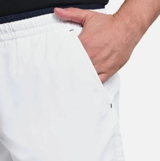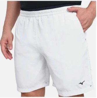 Bermuda feita com tecido extremamente leve e confortável, com bolsos laterais e cordão interno, sunga interna em mesh e forro do bolso frontal em tecido atoalhado. Combinação de cores clássicas. Logo Mizuno bordado