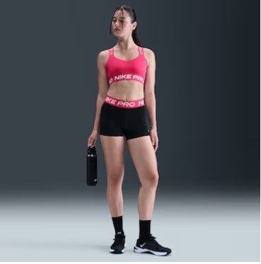Os shorts Nike Pro são fabricados com tecido elástico, elegante e sustentado que drena o suor para ajudar a manter você seca e confortável durante seus treinos. Este produto é feito com, no mínimo, 50% de fibras de poliéster reciclado.